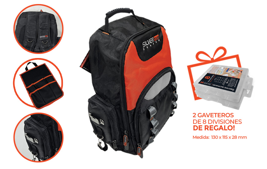 Gracias a sus 8 separaciones frontales, múltiples compartimentos internos y bolsillo lateral con cierre, esta mochila permite ordenar y acceder rápidamente a cada herramienta, ideal para trabajo en movimiento.